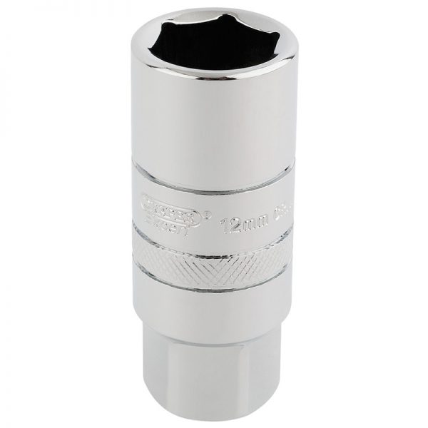 Expert Quality, 6 point deep sockets with a rubber insert for plug protection and retention. Manufactured from chrome vanadium steel hardened and tempered with a polished finish. Socket length 65mm. Each socket has a knurled ring for extra grip. Display packed.