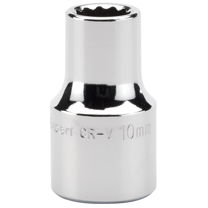 Expert Quality, 12 point sockets manufactured from chrome vanadium steel hardened, tempered, chrome plated and polished for corrosion protection. Chamfered end allows positive nut location. Display packed.