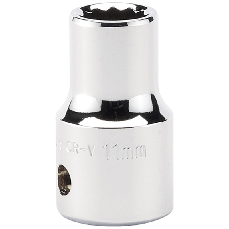 Expert Quality, 12 point sockets manufactured from chrome vanadium steel hardened, tempered, chrome plated and polished for corrosion protection. Chamfered end allows positive nut location. Sold loose.