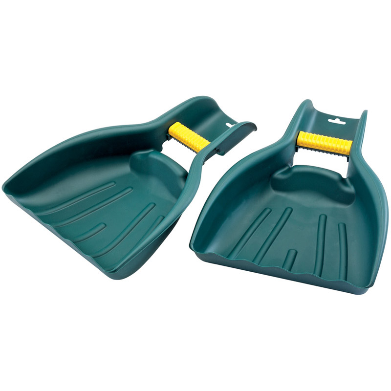 Scoop-shaped with soft hand grips. Impact-resistant heavy duty polypropylene. Polybag with label.